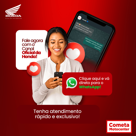Faça sempre as revisões periódicas: nas duas primeiras, a mão de obra é gratuita. Garanta a sua segurança e mantenha a sua Honda em perfeitas condições de uso.